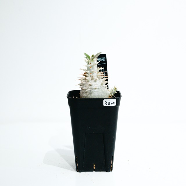 店主実生のパキポディウム。 管理タグ紛失により品種がわからなくなってしまったため、SPとしております。 種子の情報が正しければ、エブレネウムかエニグマのいずれかとなります。 最後の写真はサイズ比較用にプレステラ90と一緒に撮影しております。サイズのご参考にしてください。 ■育て方のポイント ・日光: 明るい日差しを好みますが、真夏の強い直射日光は避けましょう。 ・水やり: 成長期(春〜夏)は土が完全に乾いてからたっぷりと水を与えます。休眠期(秋〜冬)は水を控えめにし、塊根が腐らないよう注意してください。 ・温度: 寒さに弱いため、冬は10℃以上を保つのが理想的です。温暖な室内での管理をおすすめします。 ■状態 2.5号スリット(外径 7.5cmx底径 5.5cmx高さ 6.7cm)植え込み ■その他:MERAKI実生株 ■免責 ・リサイクル段ボールで発送させていただく場合がございます。 ・原則、ご注文と異なる商品が届いた場合(当方の送付商品誤り)を除き、返品には応じません。