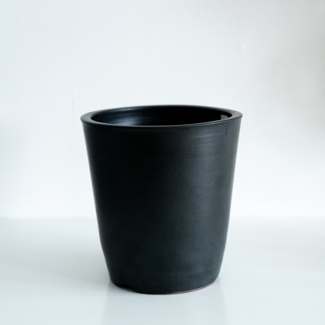 こちらは5号サイズの艶消し黒釉タイプ。シンプルながら重厚感のあるマットブラックが、植物のフォルムや質感を美しく引き立てます。