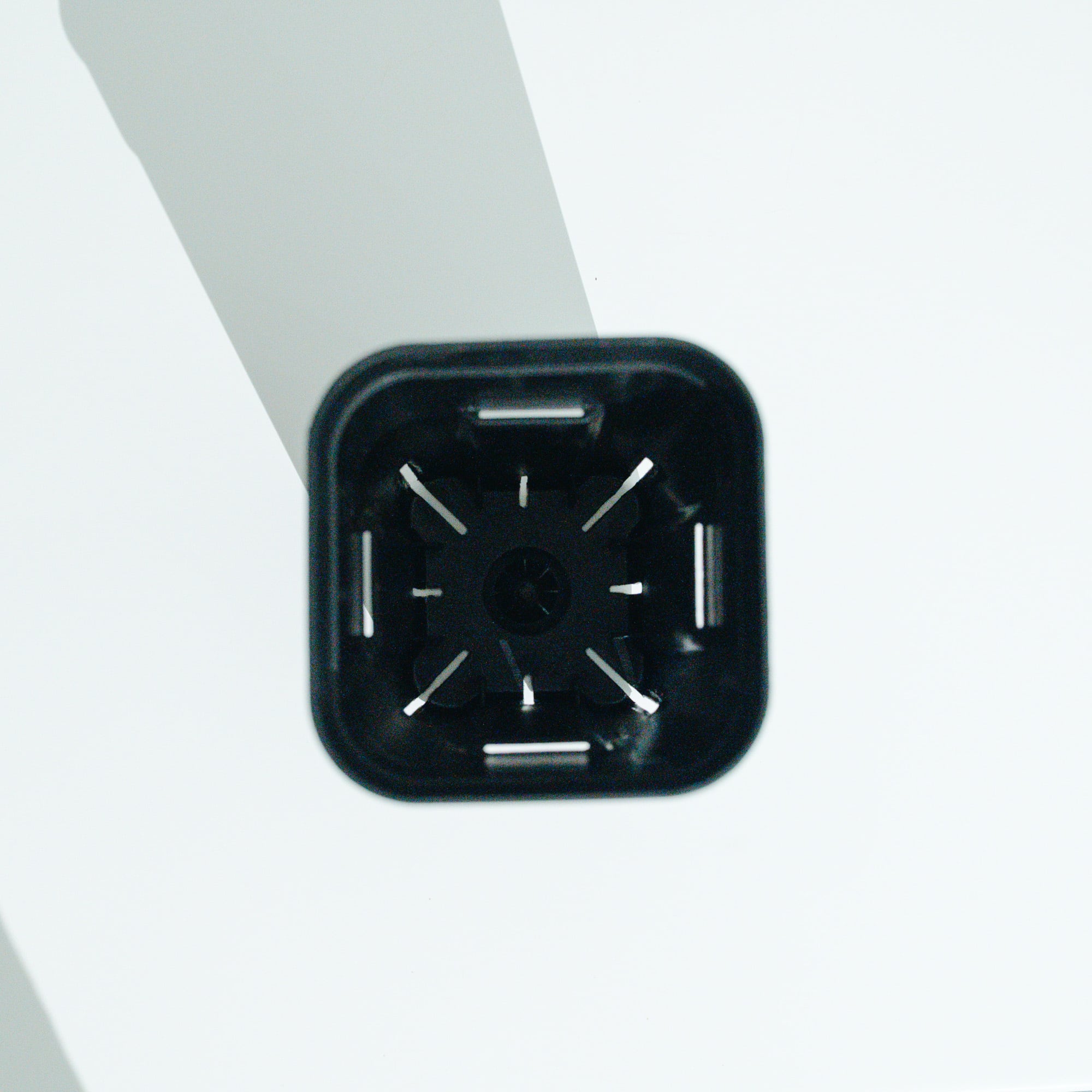 植物育成用のプラスチックポット。スリット構造により通気性・排水性に優れ、根腐れを防ぎながら健全な根張りを促します。