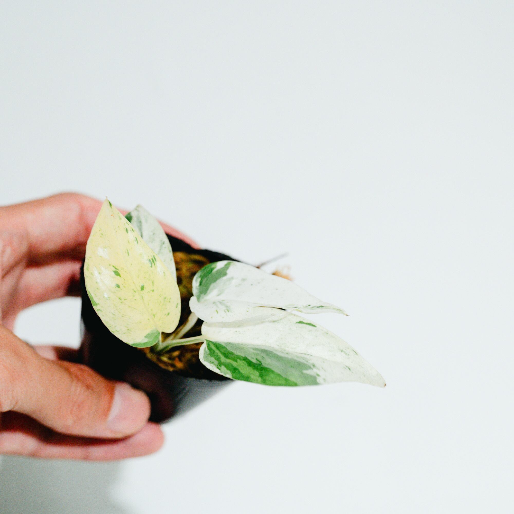 エピプレムナム・ピナツム・マーブル(Epipremnum pinnatum 'Marble')は、東南アジア原産のツル性植物・エピプレムナムの中でも、葉に入る美しい白斑が特徴の人気品種です。やわらかく波打つ葉に、ランダムなマーブル模様が浮かび上がり、インテリアとしても映える洗練された一鉢。比較的丈夫で育てやすく、吊るしても這わせても楽しめます。