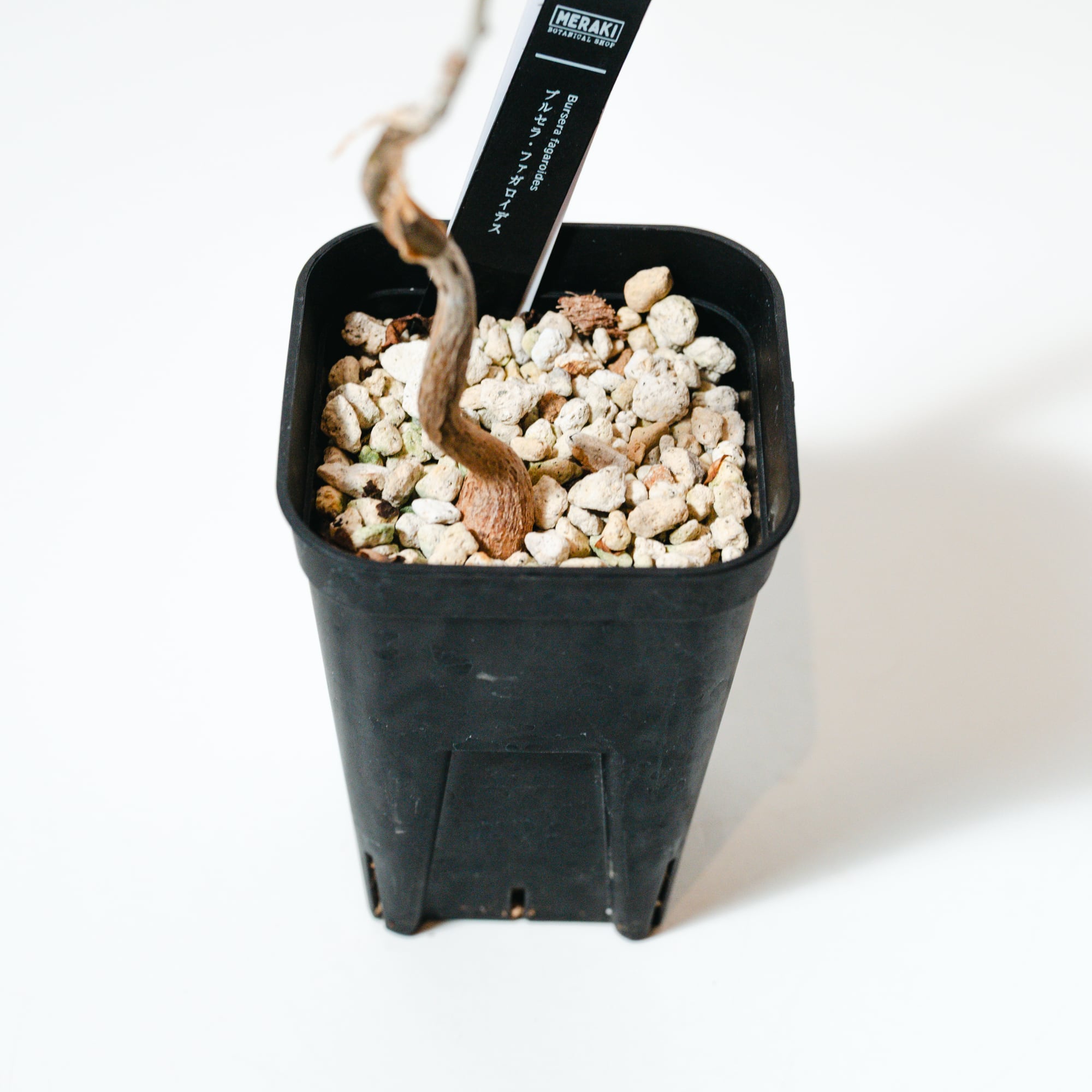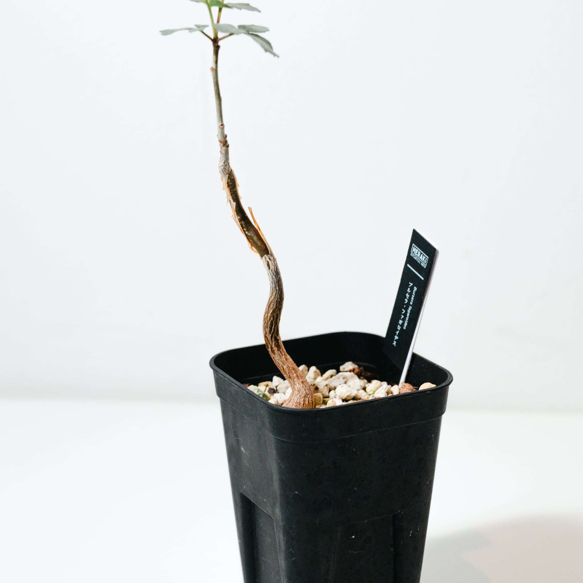 ブルセラ・ファガロイデス(Bursera fagaroides)は、メキシコを原産とする落葉性の低木で、細かく分枝した枝と滑らかな樹皮が特徴です。樹皮は成長とともに剥がれ、シナモンのような香りを放つことから“香木”としても知られます。塊根植物としては比較的育てやすく、剪定により枝ぶりを整えて盆栽感覚で楽しむこともできます。