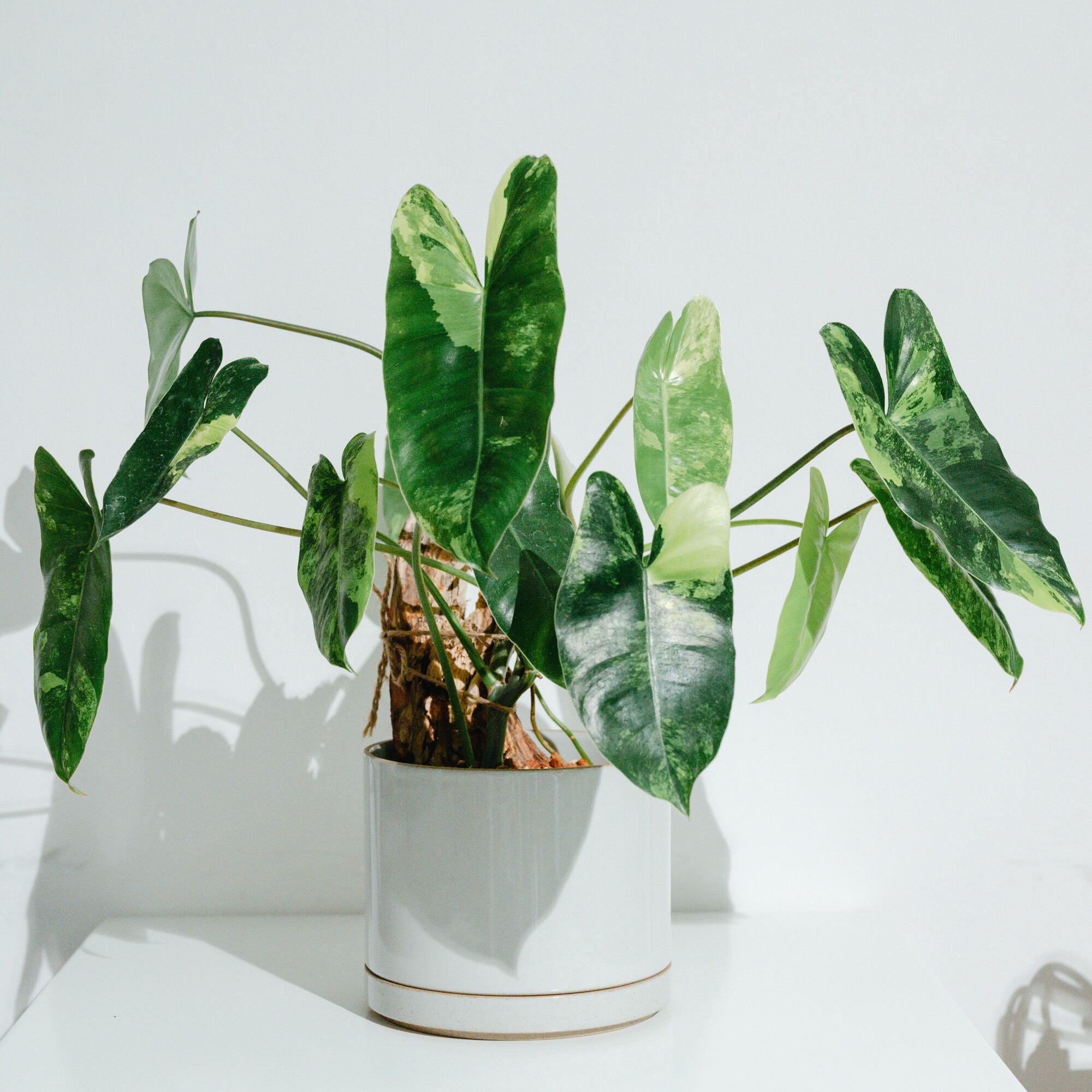 フィロデンドロン・バールマルクス斑入りをハサミポーセリンの145mmプランターに植え込みました。すぐに飾っていただけます。