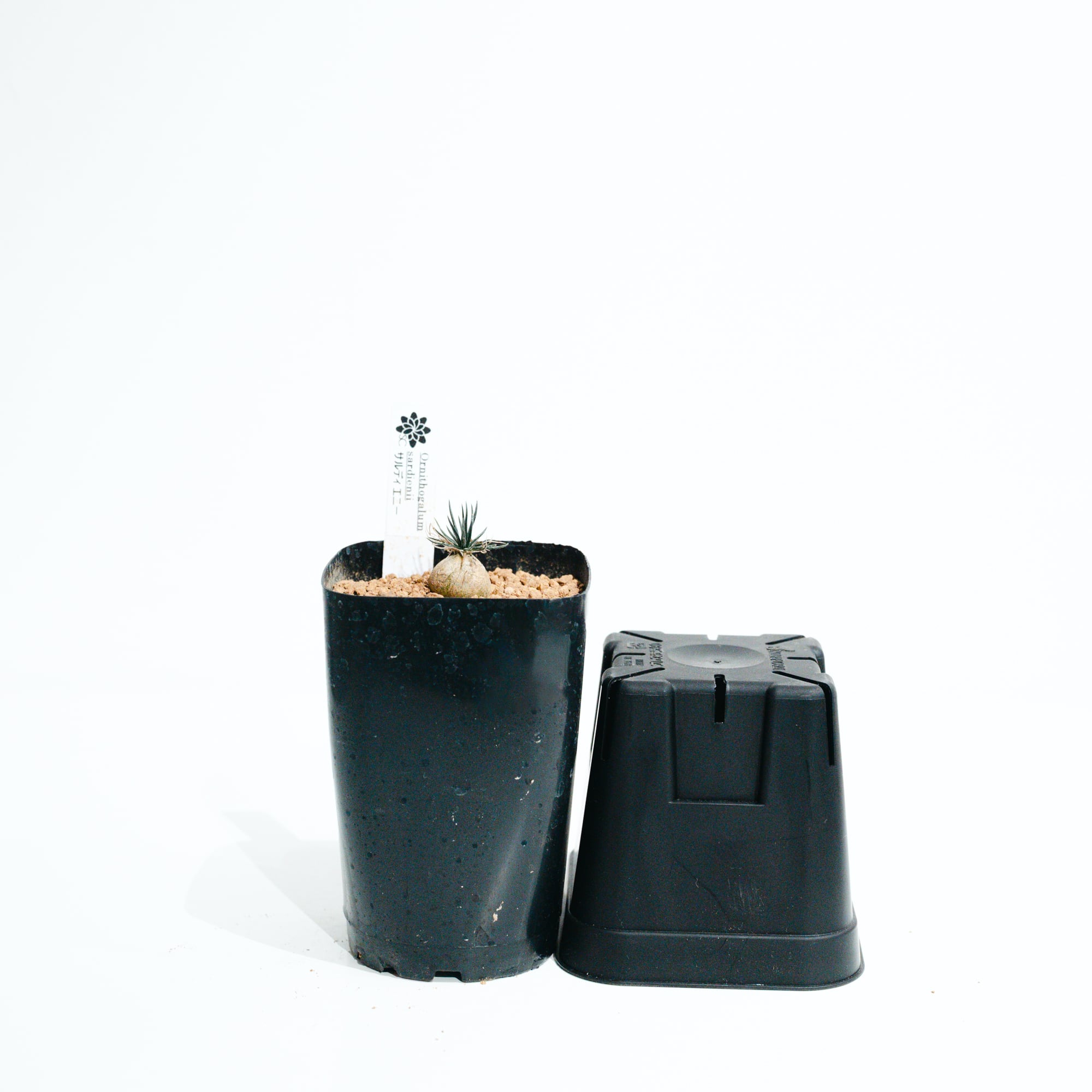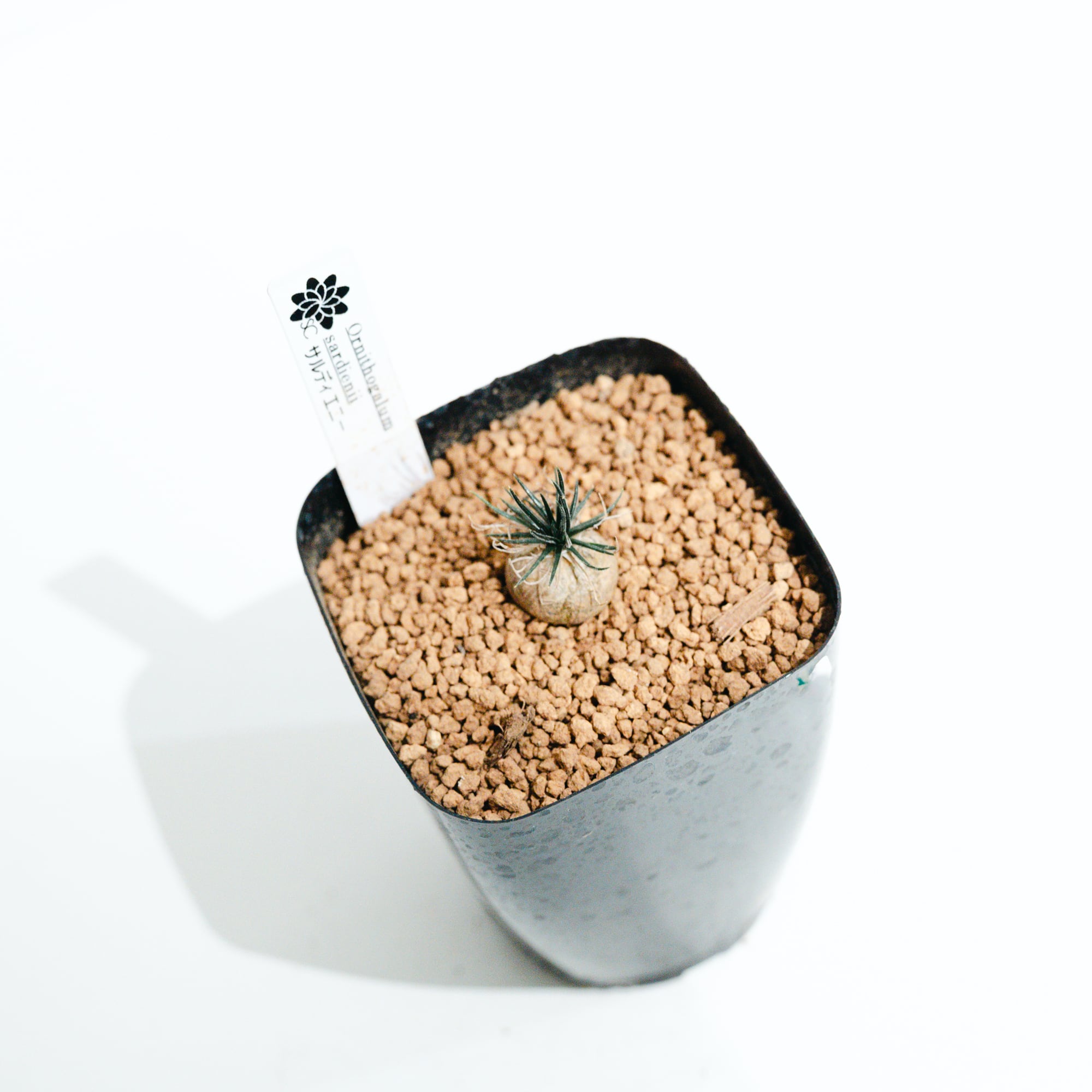 春から夏にかけて、細い花茎の先に白い可憐な小花を咲かせます。場所を取らず、デスクの上や棚など省スペースでも楽しめるため、塊根植物(コーデックス)ファンや多肉植物愛好家にも非常に人気が高い品種です。