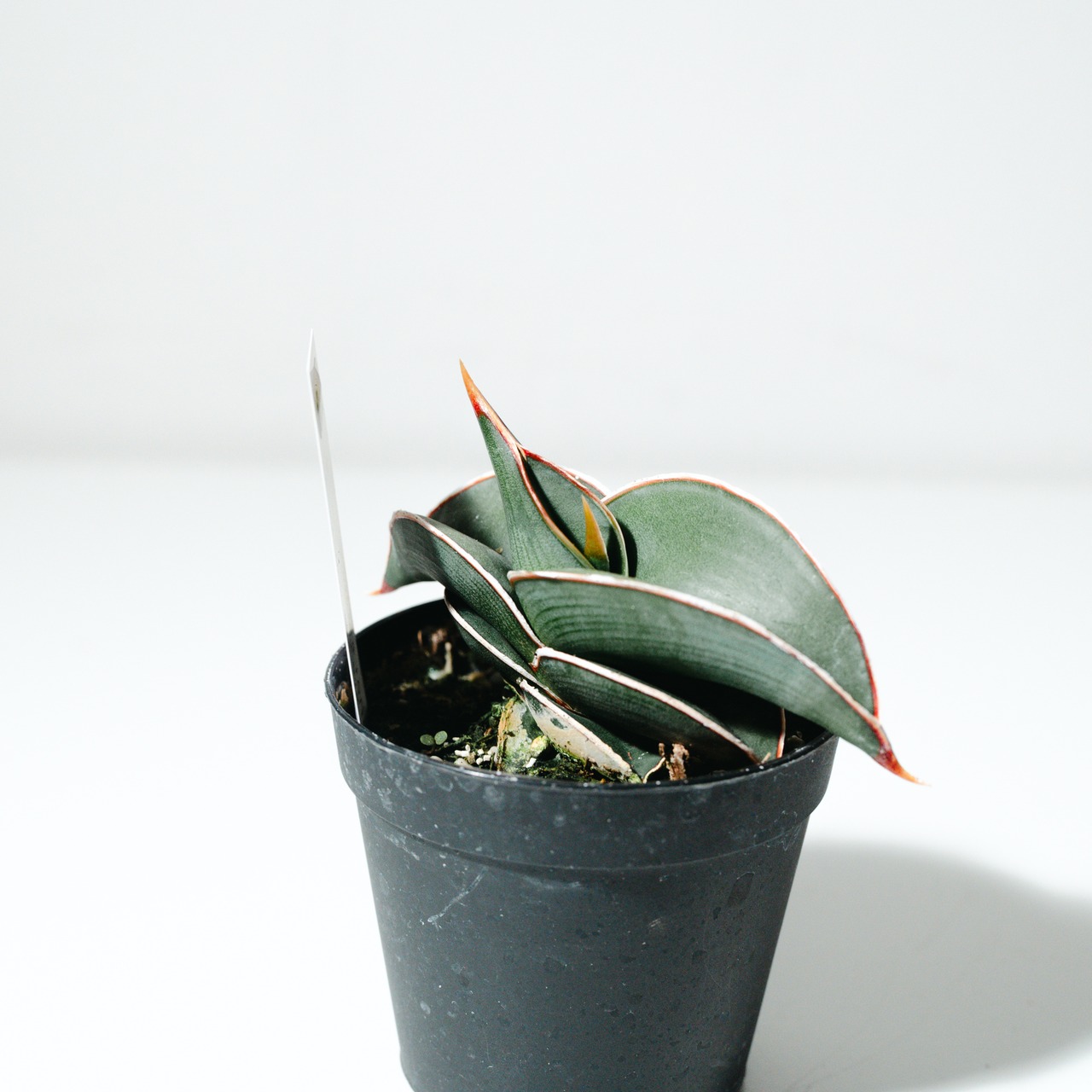 サンセベリア・ロリダは、「サンセベリアの王様」とも称される希少性の高い人気品種です。扇状に美しく重なり合う肉厚の葉が特徴で、その重厚感あふれるフォルムはまさに自然の造形美。成長が非常にゆっくりであることから流通量が少なく、コレクターズアイテムとしても知られています。青みがかった銀緑色の葉の縁には、赤茶色のラインと白く鋭いエッジが入り、ワイルドながらも気品漂う佇まいが魅力です。