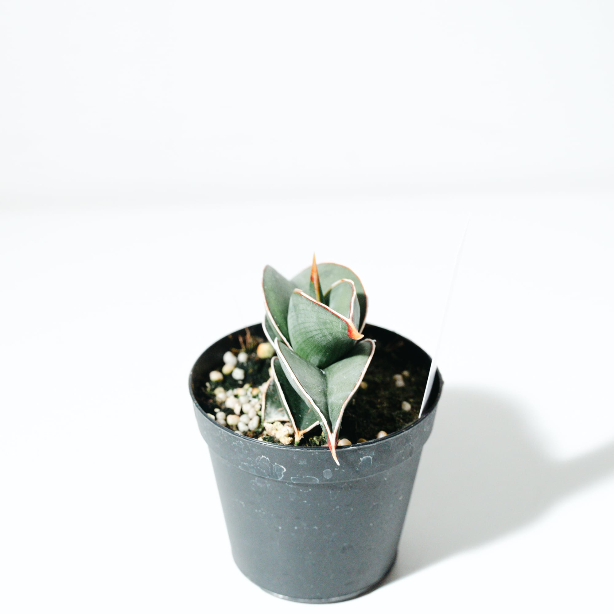 サンセベリア・ロリダは、「サンセベリアの王様」とも称される希少性の高い人気品種です。扇状に美しく重なり合う肉厚の葉が特徴で、その重厚感あふれるフォルムはまさに自然の造形美。成長が非常にゆっくりであることから流通量が少なく、コレクターズアイテムとしても知られています。青みがかった銀緑色の葉の縁には、赤茶色のラインと白く鋭いエッジが入り、ワイルドながらも気品漂う佇まいが魅力です。