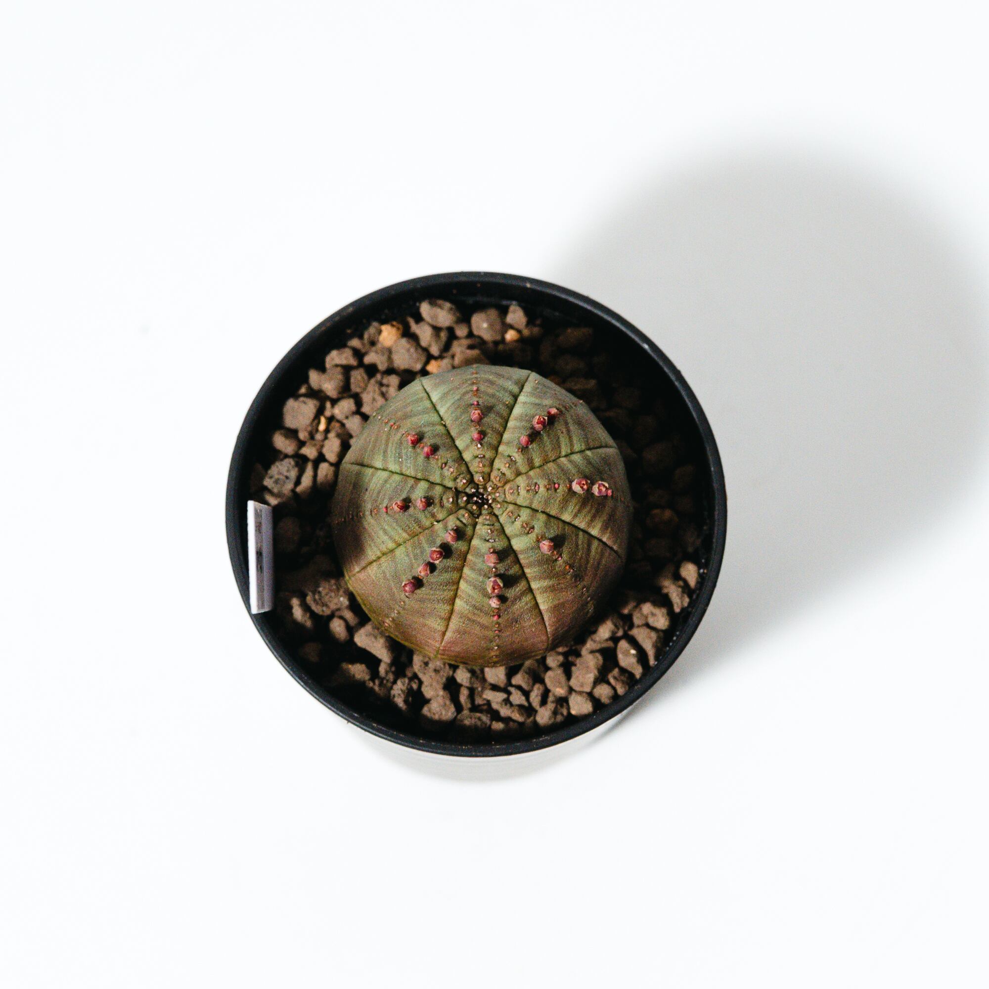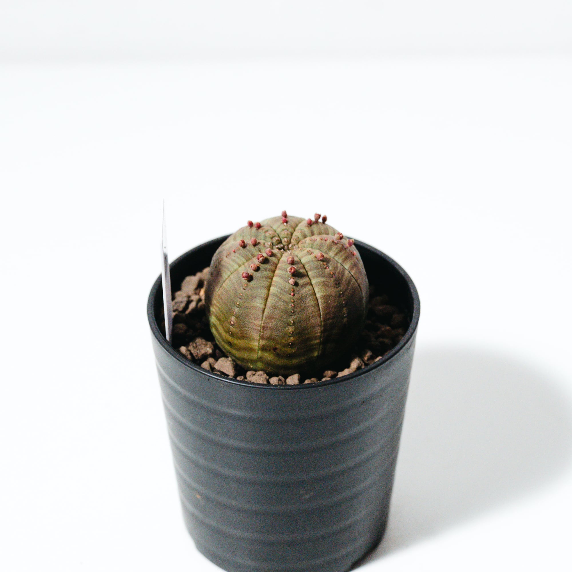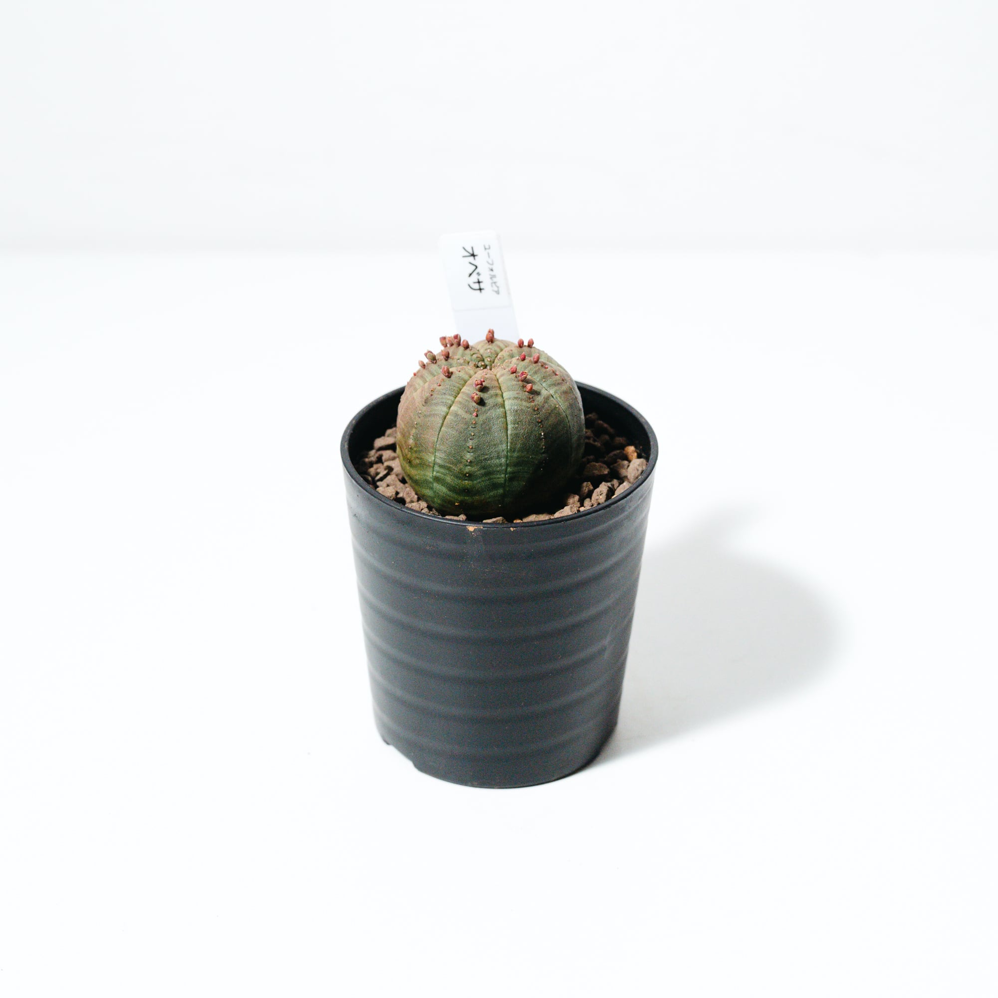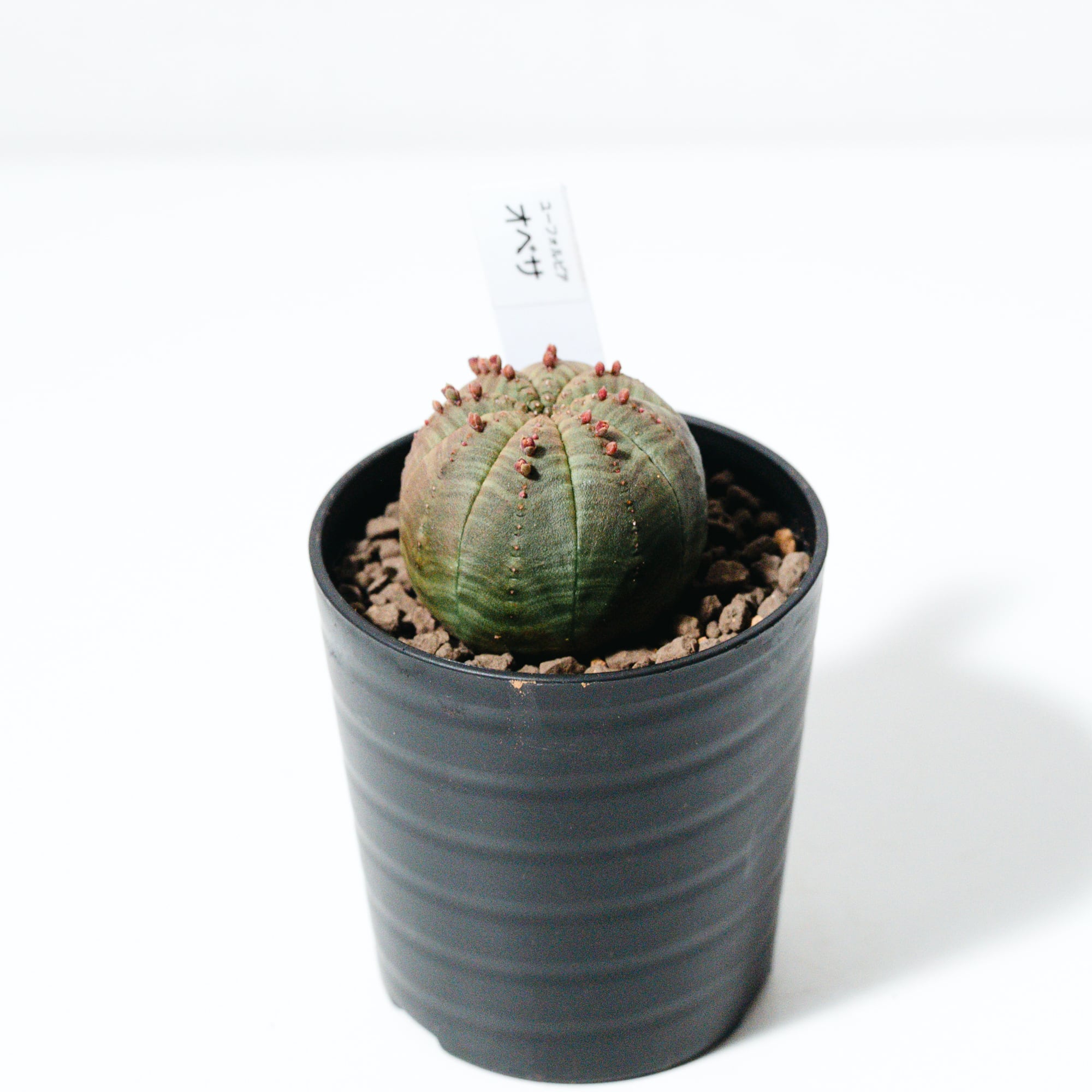 若いうちは真ん丸なボール状ですが、成長とともに少しずつ円筒形へと姿を変え、年月を経て表面が木のように質感が変わる「木質化」も、オベサ栽培の大きな醍醐味です。インテリア性が非常に高く、モダンな鉢と合わせることでより一層その造形美が際立ちます。