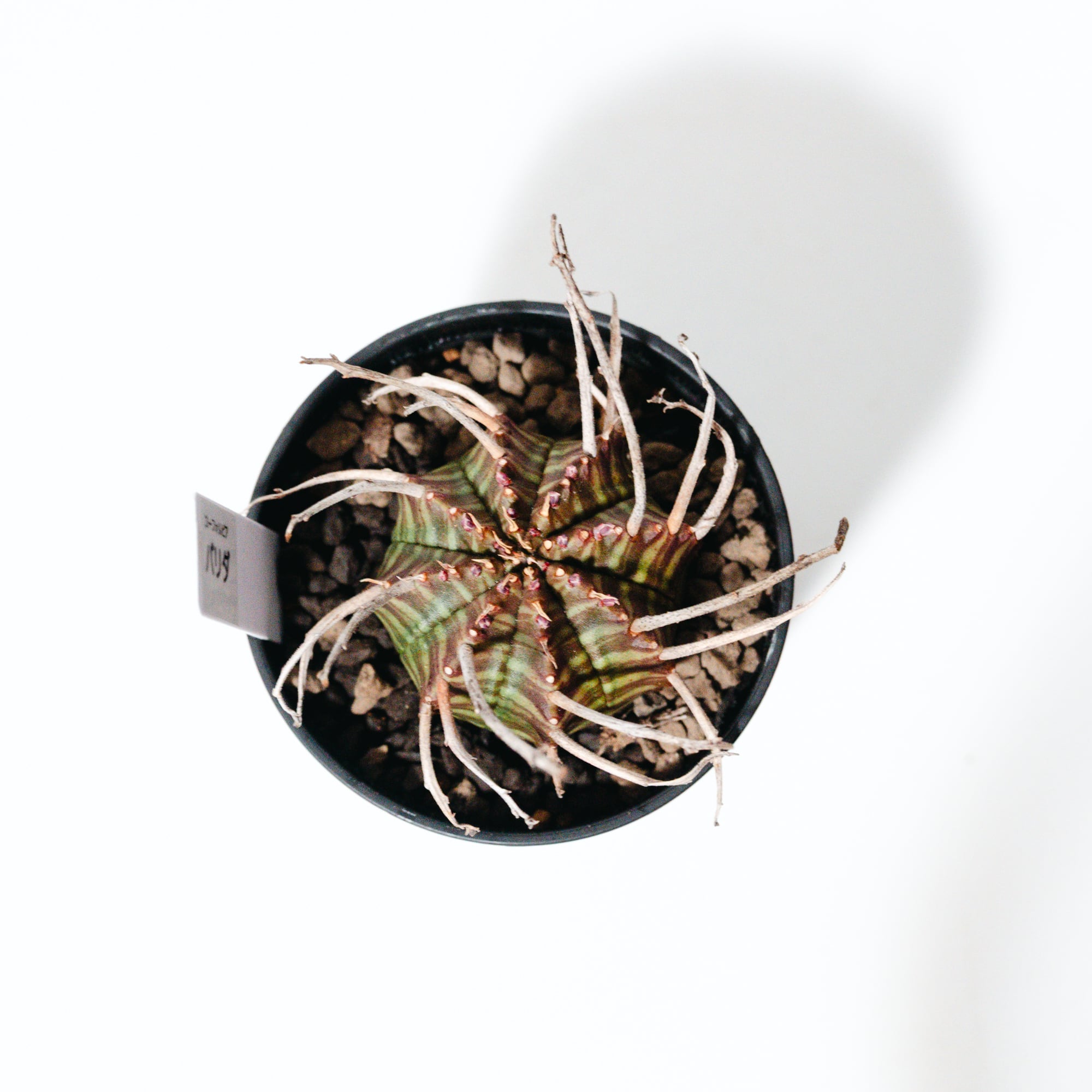 ・ユーフォルビア属の特性として、傷つくと白い乳液(樹液)が出ます。体質によりかぶれる恐れがあるため、植え替え時などは直接触れないようご注意ください。