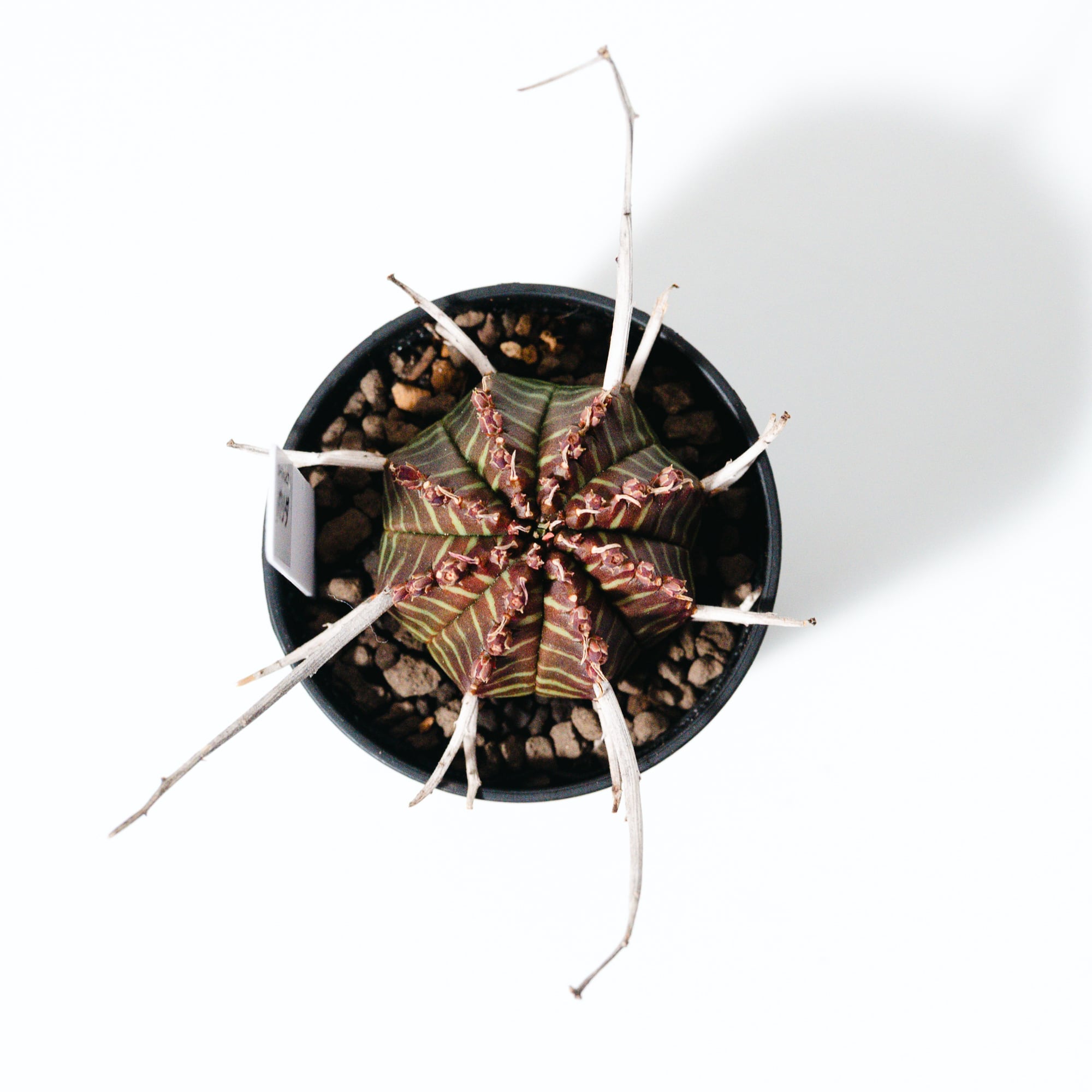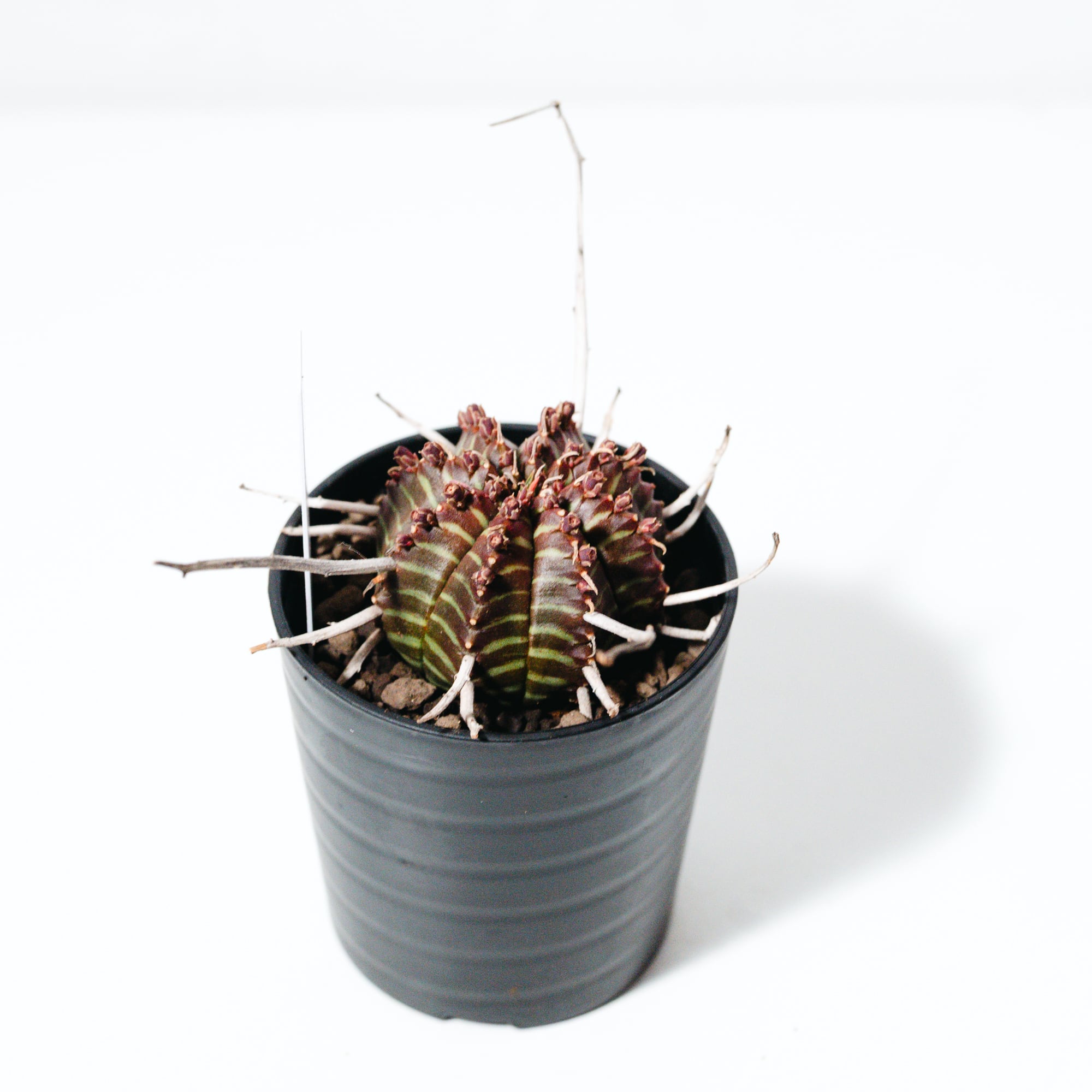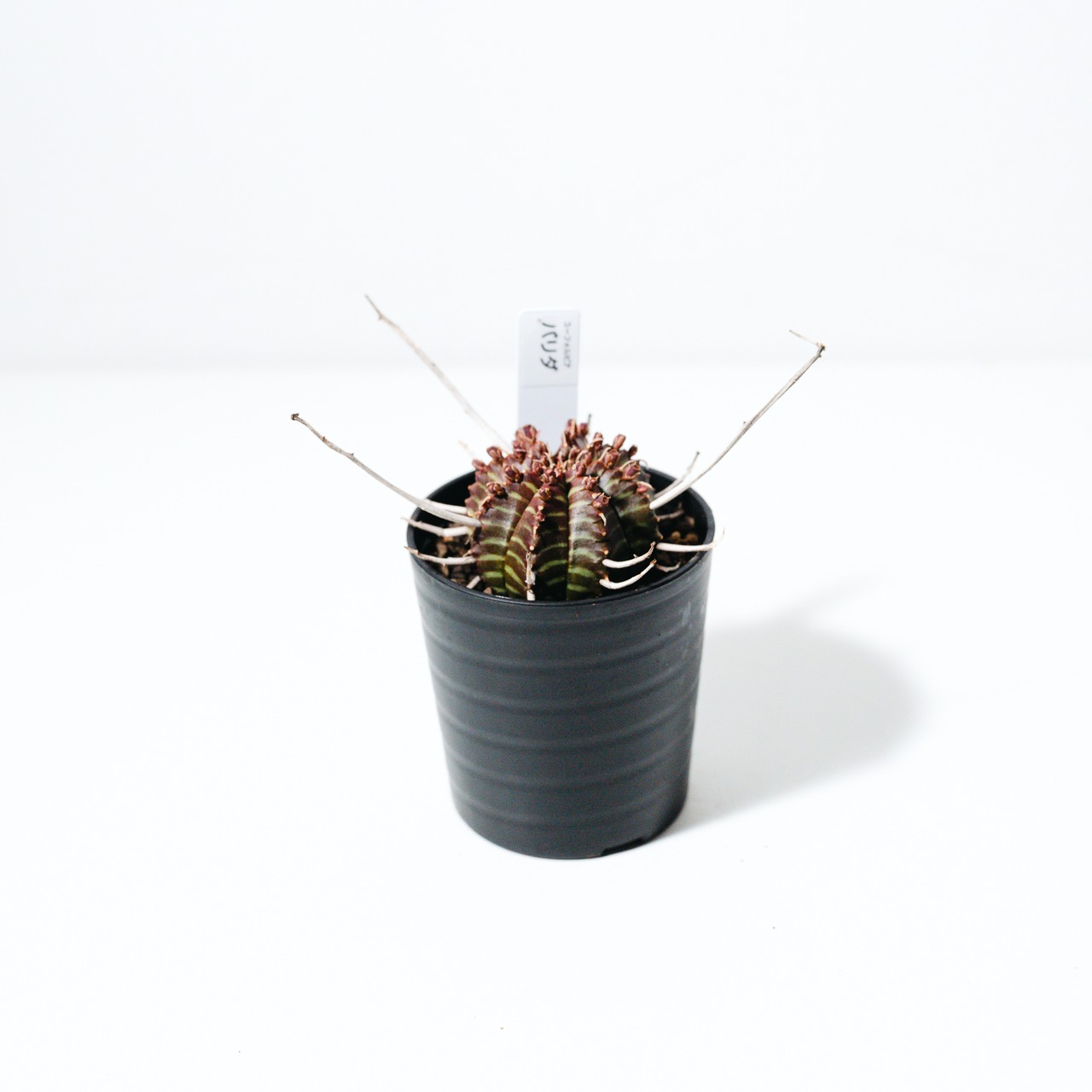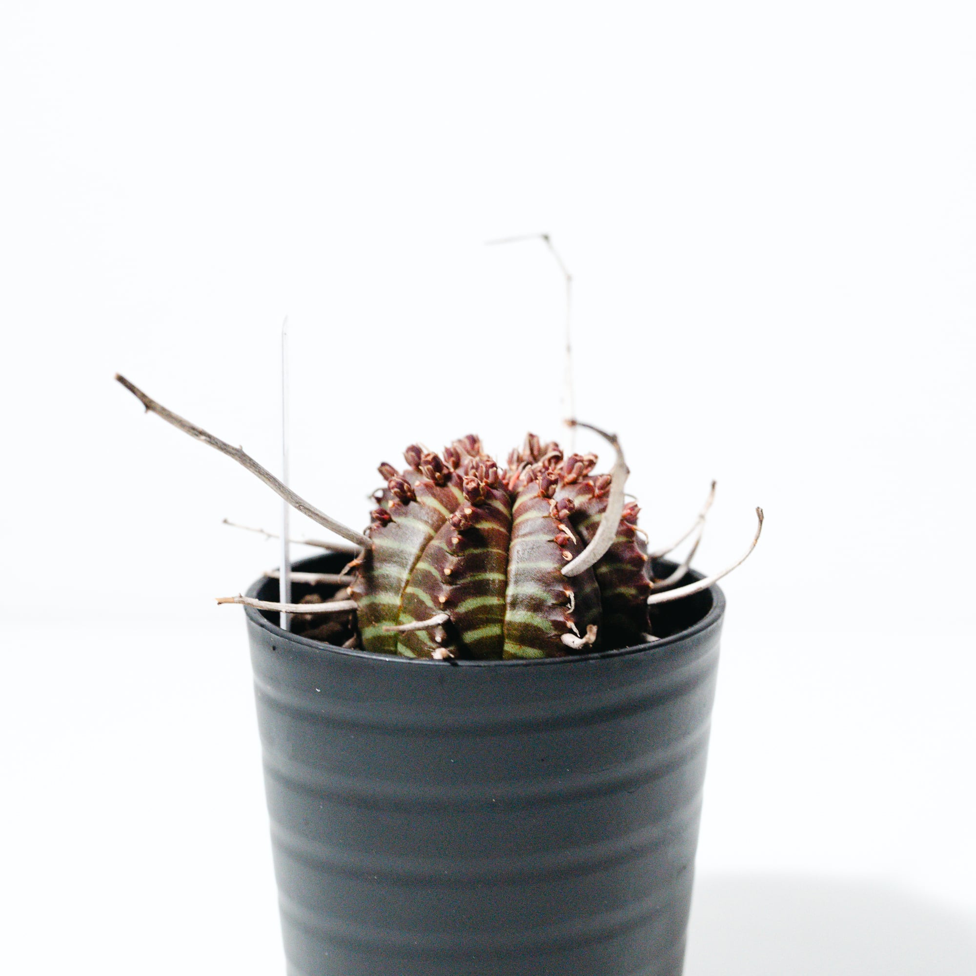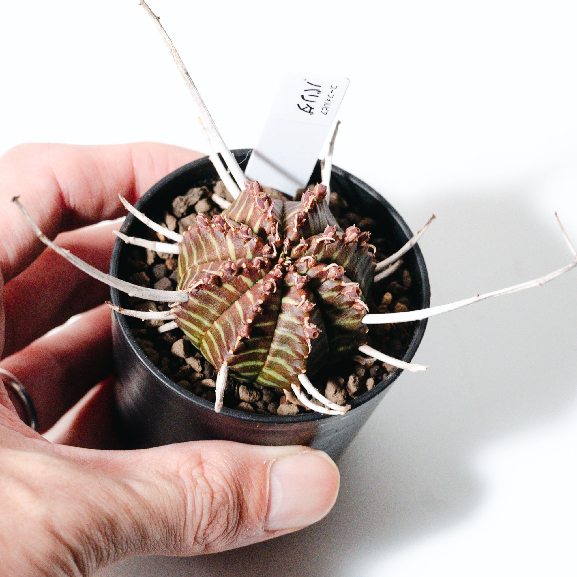 成長とともにこの花殻が重なり合い、王冠のような力強いシルエットへと進化します。葉を持たないミニマルな姿ながら、表面に現れる鮮明な縞模様(ゼブラ柄)は非常に美しく、まさに「機能美」を体現したような植物です。成長はゆっくりですが、その分、時間をかけて自分だけの一株に育てる喜びを味わえます。