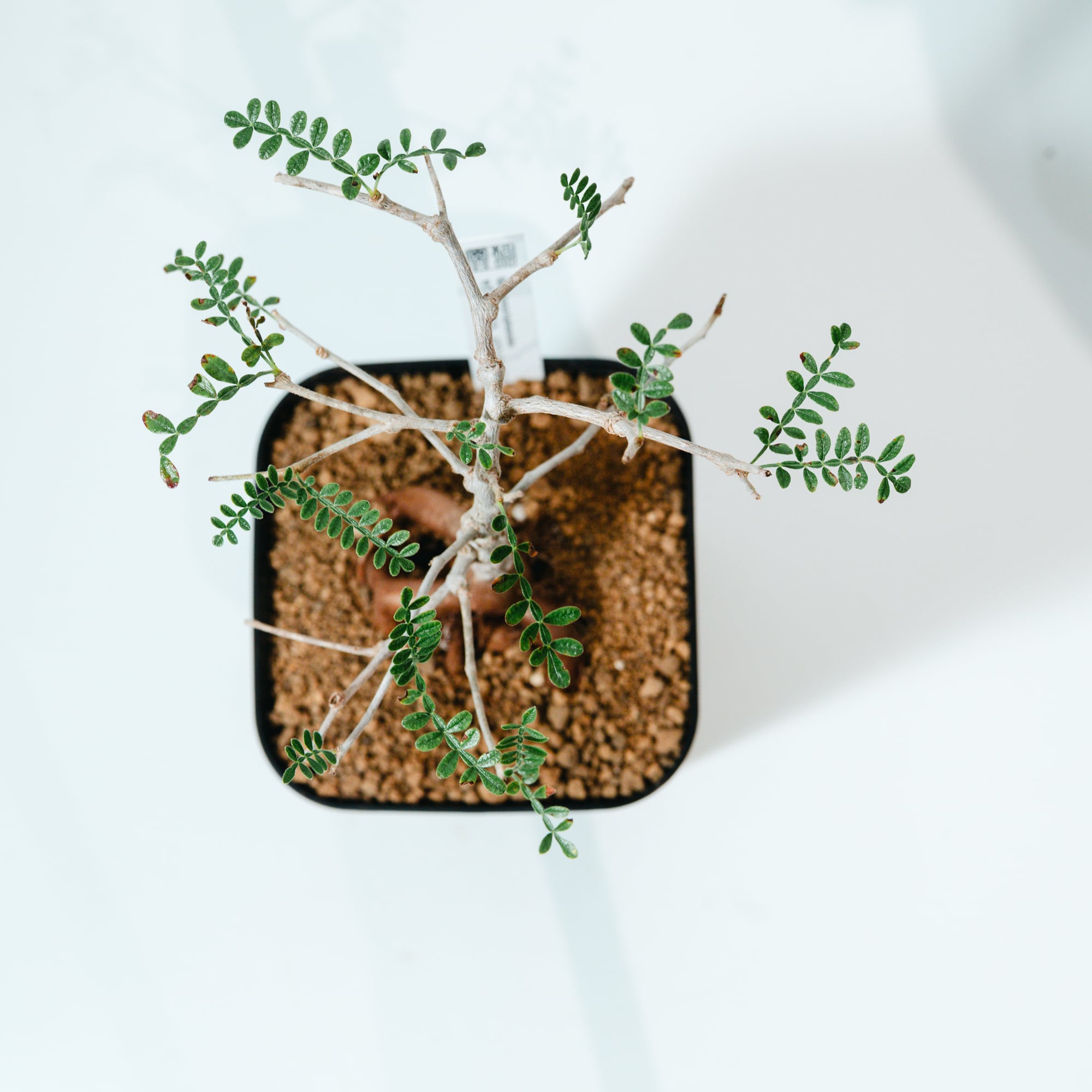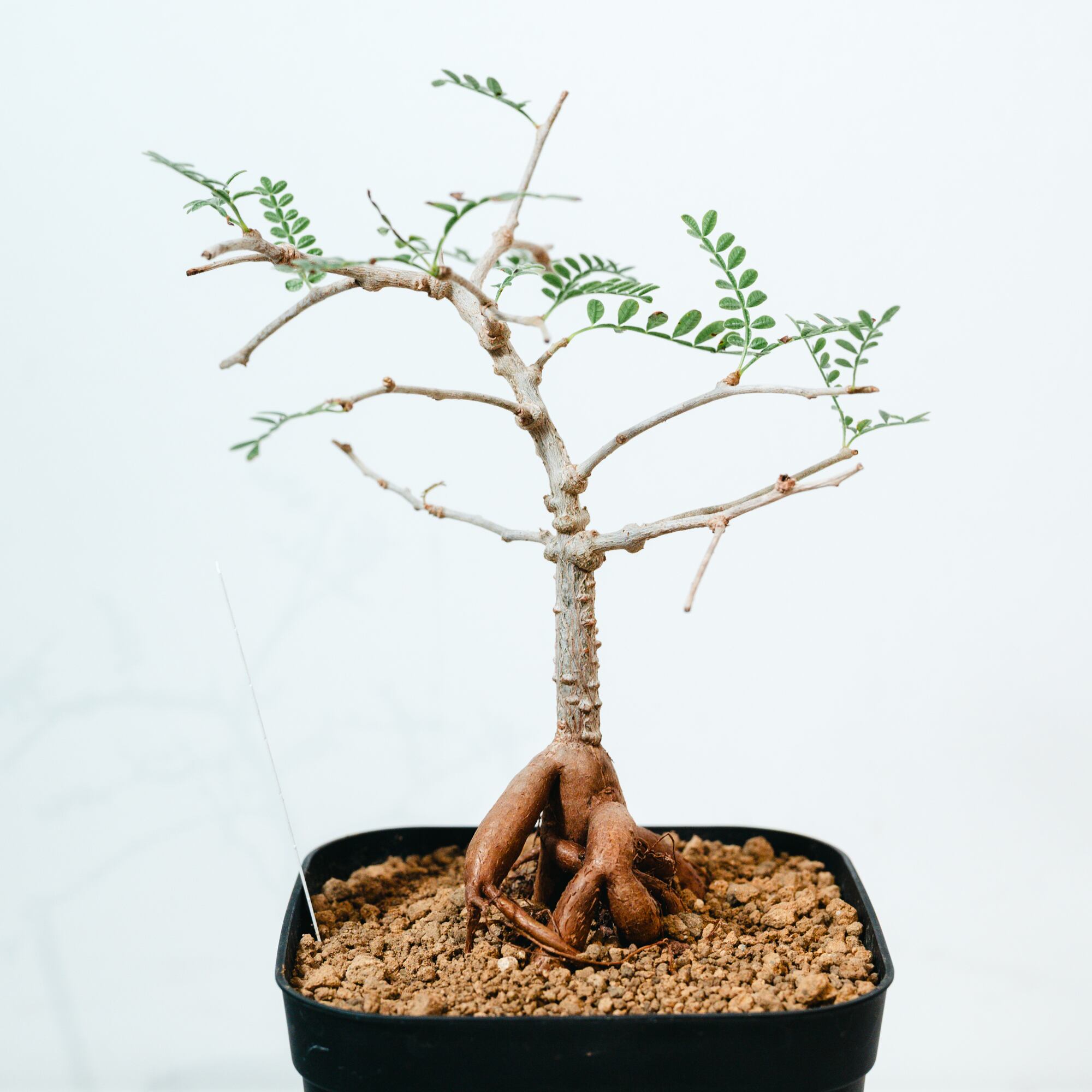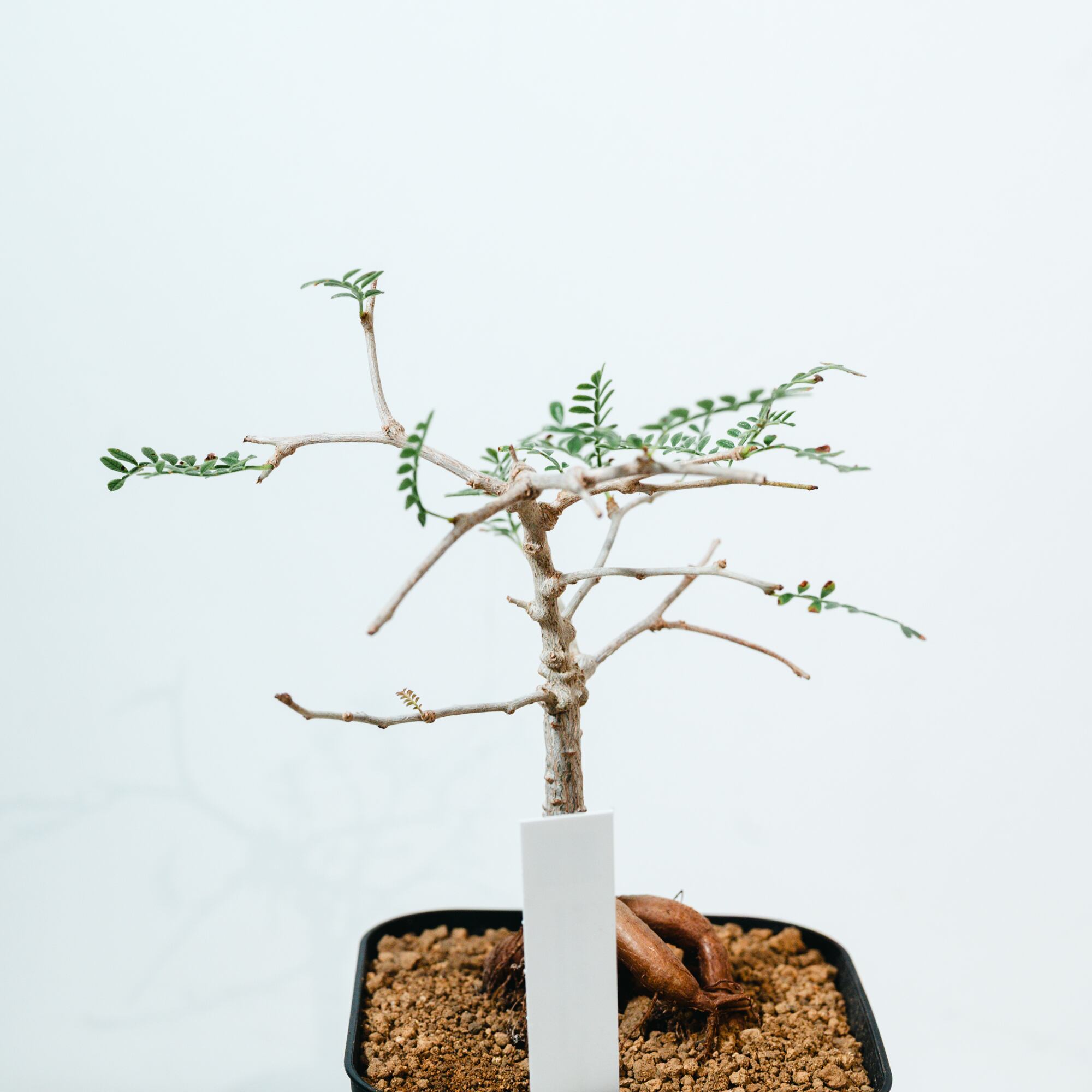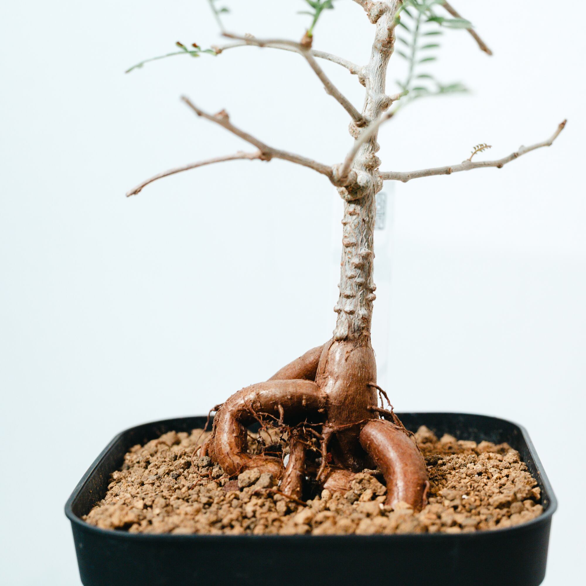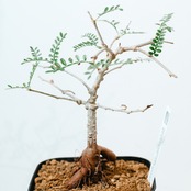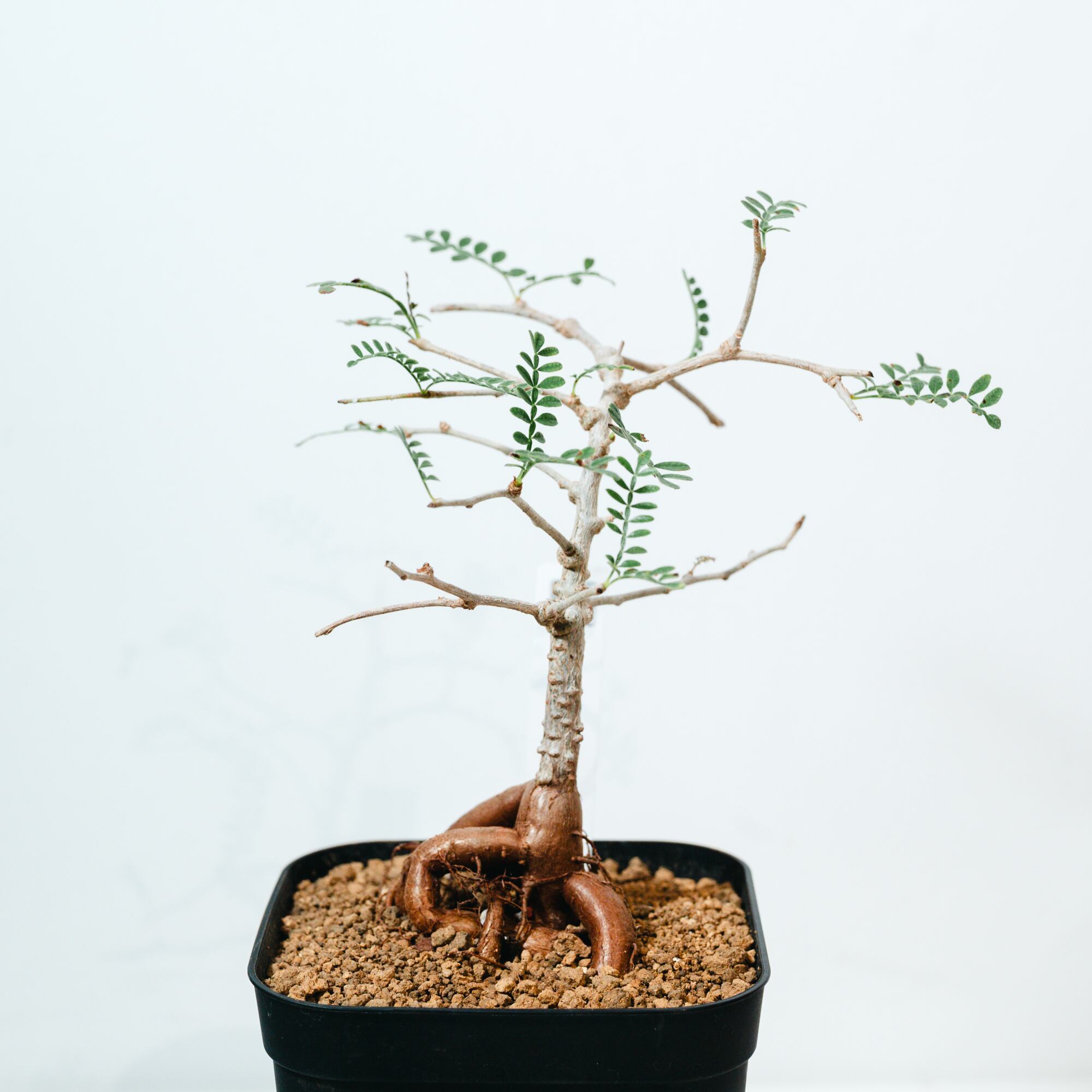 最大の特徴は、小さな羽状複葉の表面に繊細な「うぶ毛」が生える点で、光に透けると柔らかく幻想的な表情を見せてくれます。成長と共に幹がゴツゴツとした質感に変化し、盆栽のような風格ある佇まいへと育つ、非常にコレクション性の高い一株です。