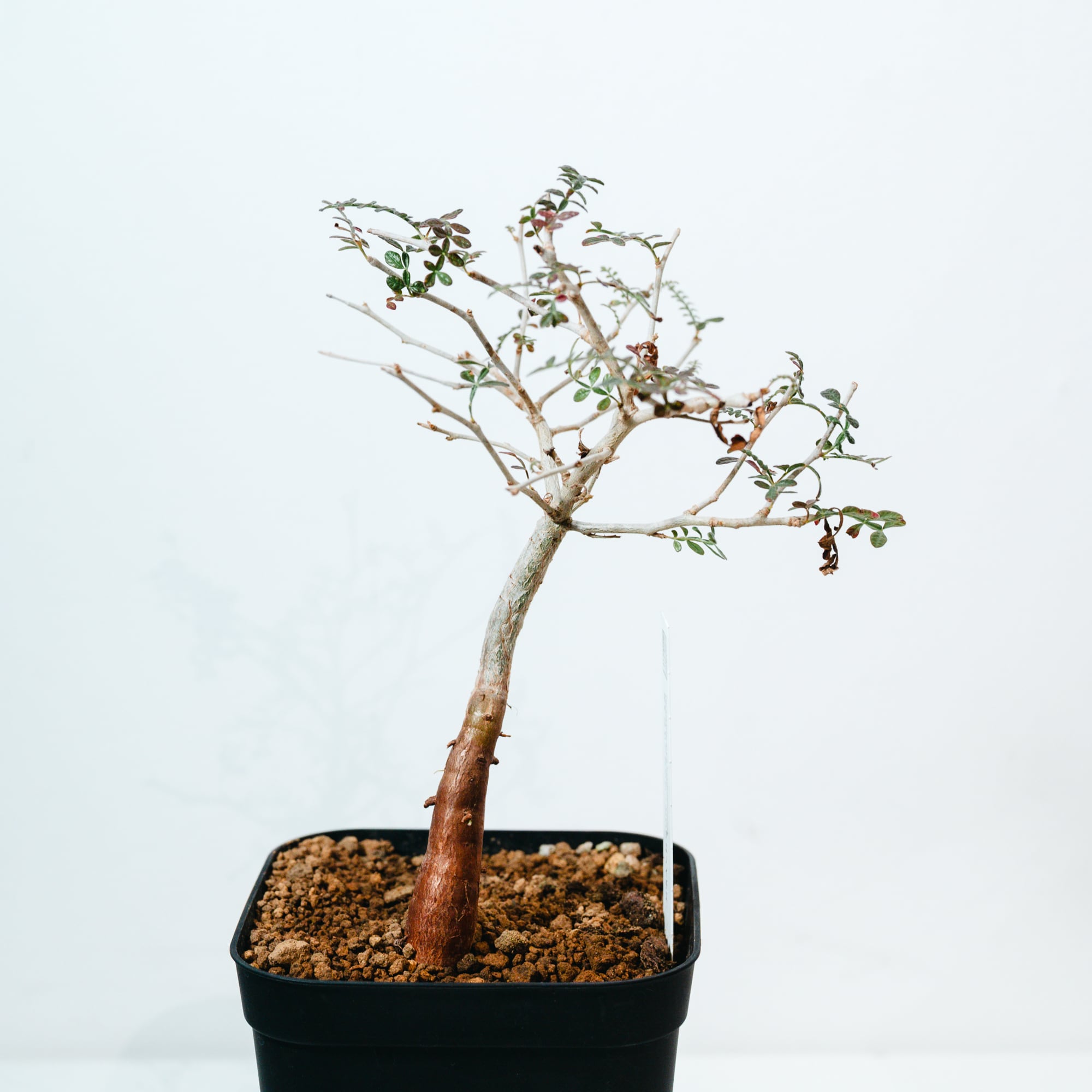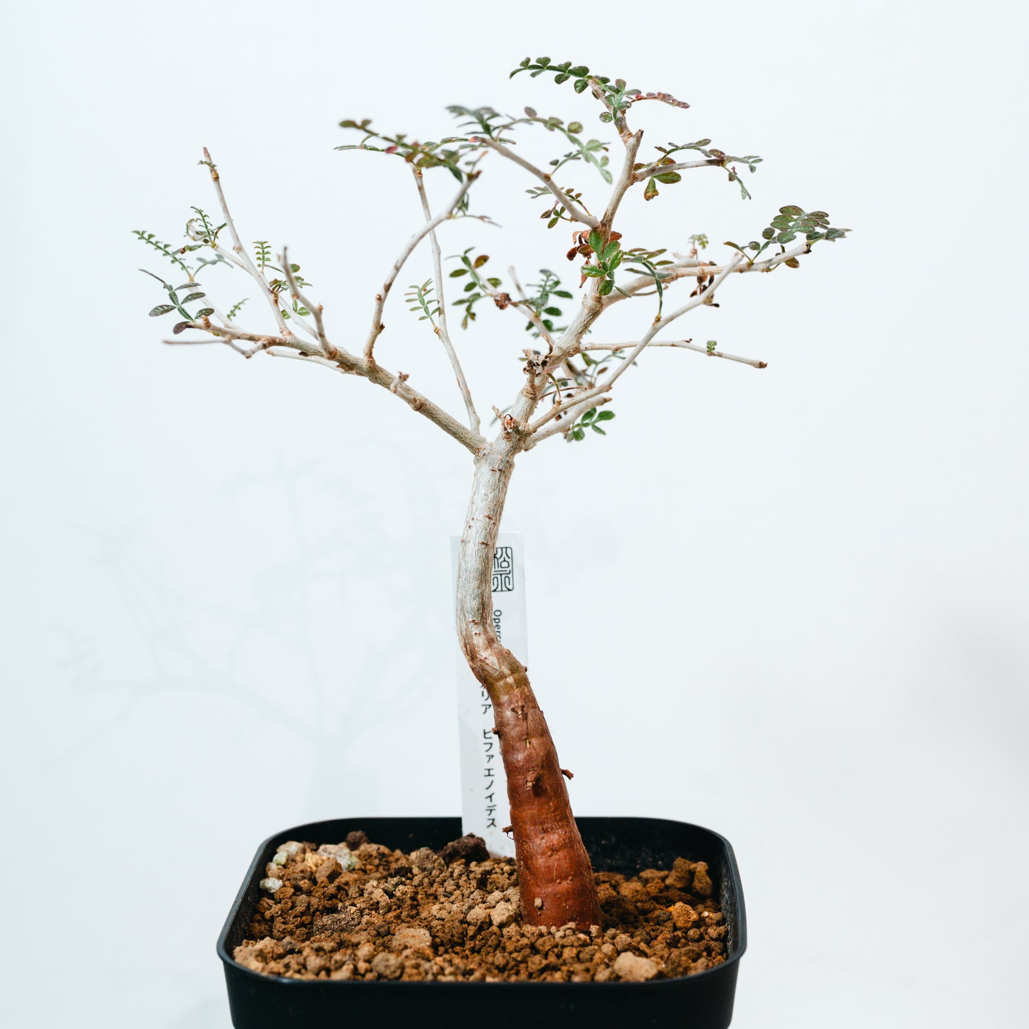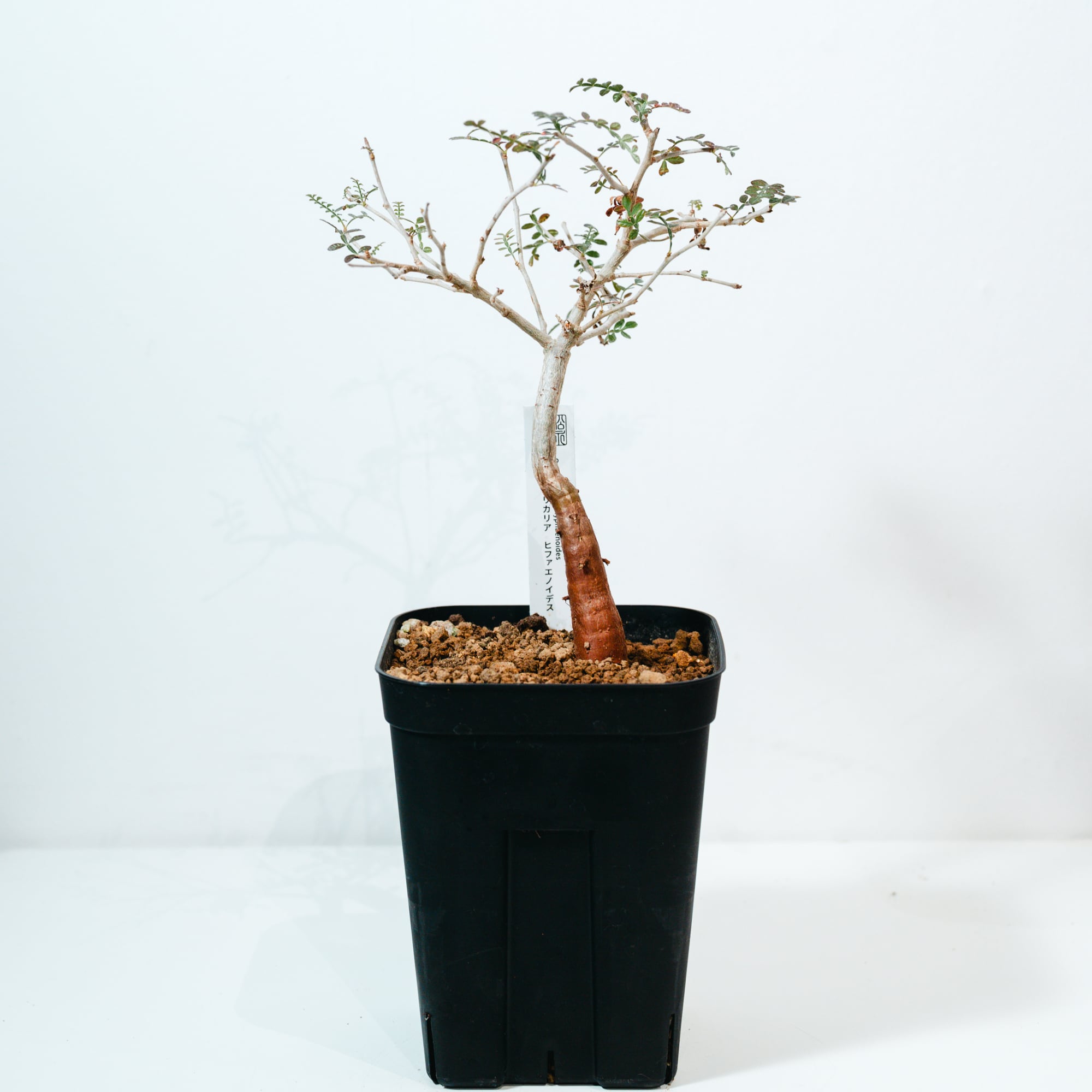 最大の特徴は、小さな羽状複葉の表面に繊細な「うぶ毛」が生える点で、光に透けると柔らかく幻想的な表情を見せてくれます。成長と共に幹がゴツゴツとした質感に変化し、盆栽のような風格ある佇まいへと育つ、非常にコレクション性の高い一株です。